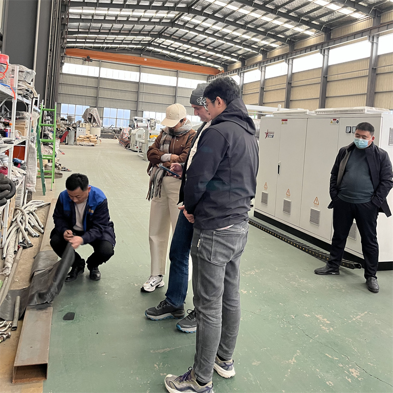 今年の冬は異常に寒いですね。外では雪が舞い、刺すような風が徐々に街に侵入してきています。気温は氷点下まで下がりましたが、それでも私たちの仕事への熱意は衰えていません。のSBS防水膜装置は受け入れテストに合格し、全員が梱包と発送に追われています。 SBS防水膜は主に屋根防水に使用されます。防水膜の一般的な材料には、改質アスファルトや TPE などがあります。当社の装置は TPE と SBS の両方を製造できます。地下工学防水は主に地下室、地下車庫、地下鉄トンネル、民間防衛プロジェクト、その他の地下構造物に使用されます。地下環境は常に地下水と湿気の影響を受けます。防水膜は地下水の浸透を防ぎ、構造的な湿気や腐食を回避し、地下空間の乾燥と構造的な安全性を確保します。SBS防水膜押出装置当社工場の主要な主力製品の 1 つです。完全な生産プロセスには、プラスチックを溶融する単軸押出機、材料を濾過する油圧式スクリーンチェンジャー、プラスチックシートブランクの初期成形用の金型、冷却および成形用の 3 ロールカレンダー、製品の冷却と固化用の冷却ラック、安定した生産のために押出機と連動して動作するトラクションマシン、および仕様と長さに応じて製品の巻き取りを完了する巻取機が含まれます。我々は持っていますSBS防水膜押出装置在庫があり、材料試験サービスを提供しています。当社の機器のご注文を歓迎します。